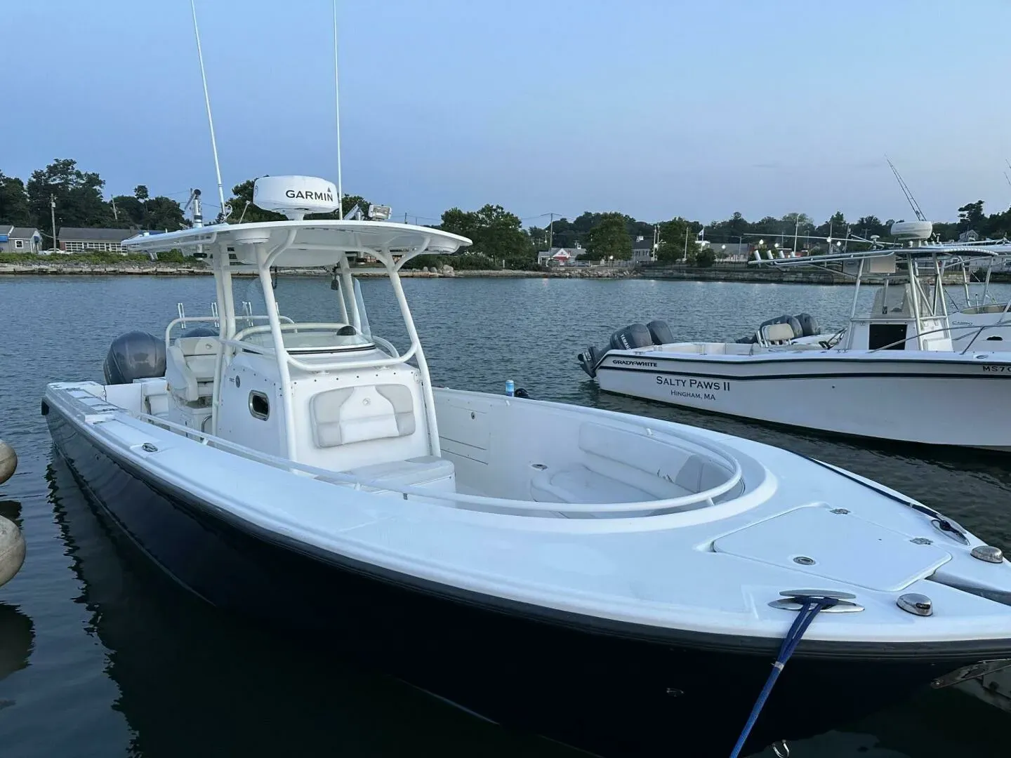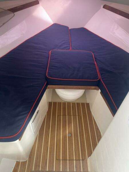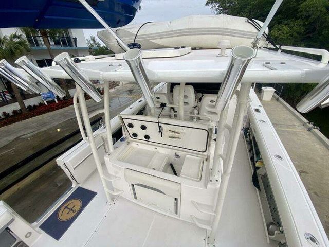 Knot for Sale is a beautifully well-equipped 2006 (hull #30) Hunt Harrier 25 with only 525 engine hours. Recent upgrades include Cushions, Bimini Top and upgraded Electronics Package. Her majestic flag blue hull and double red boot stripe instantly stand her out as a timeless classic. The Hunt Deep