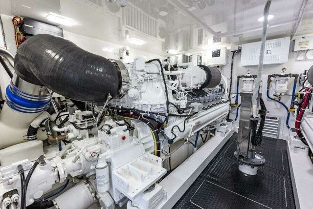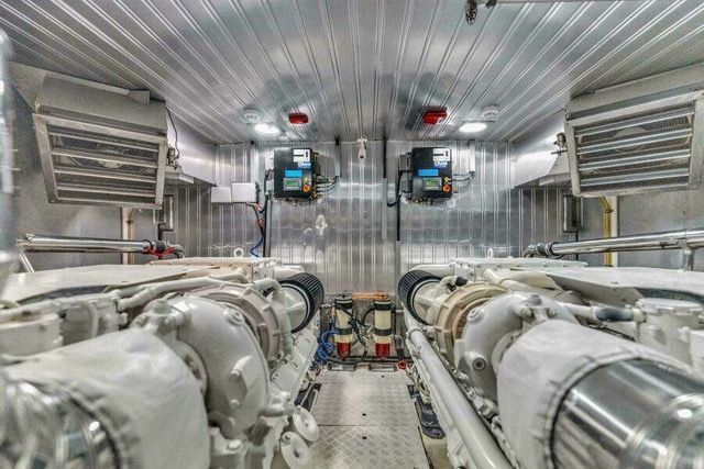 Brand new to the market, this one-owner custom built 2019 Viking 80 is a true fishing machine in addition to a luxurious cruising vessel. Powered by 2,635-horsepower Tier 3 MTU Series 2000 V16 M96Ls that comfortably abide in an immaculate engine room with a full 7 feet of headroom, this boat soars.